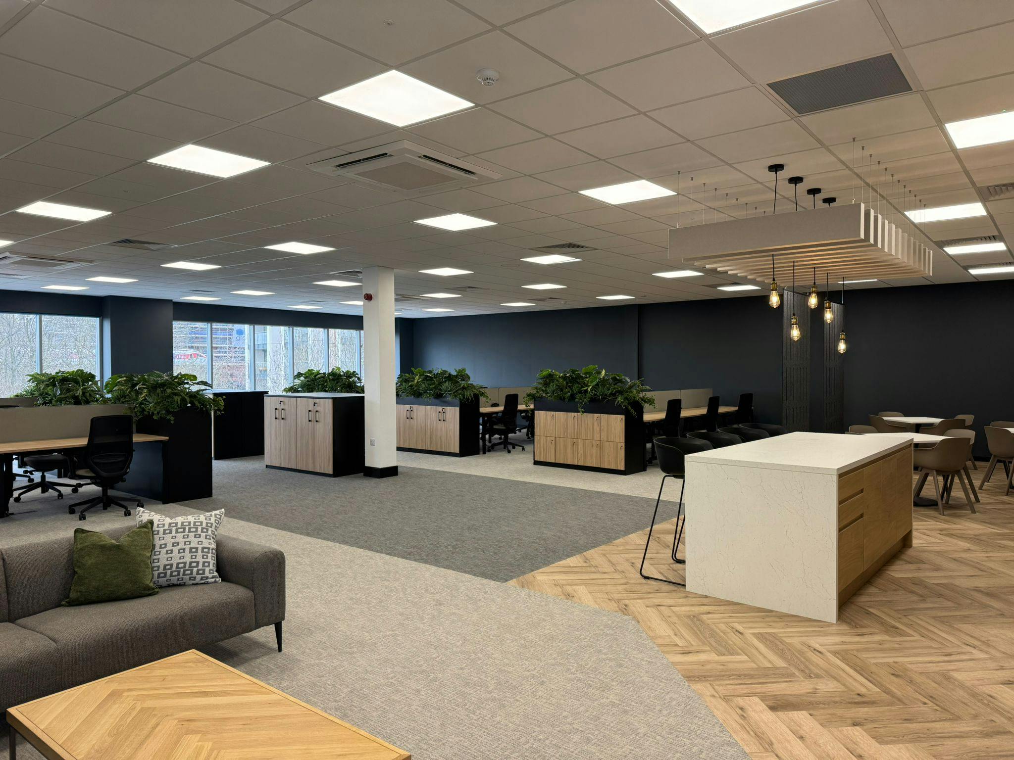 Designed for modern working, the space provides 48 desks with flexibility to expand, an 8 person board room, welcoming client reception area and fully equipped kitchen, break out zone and lockers.